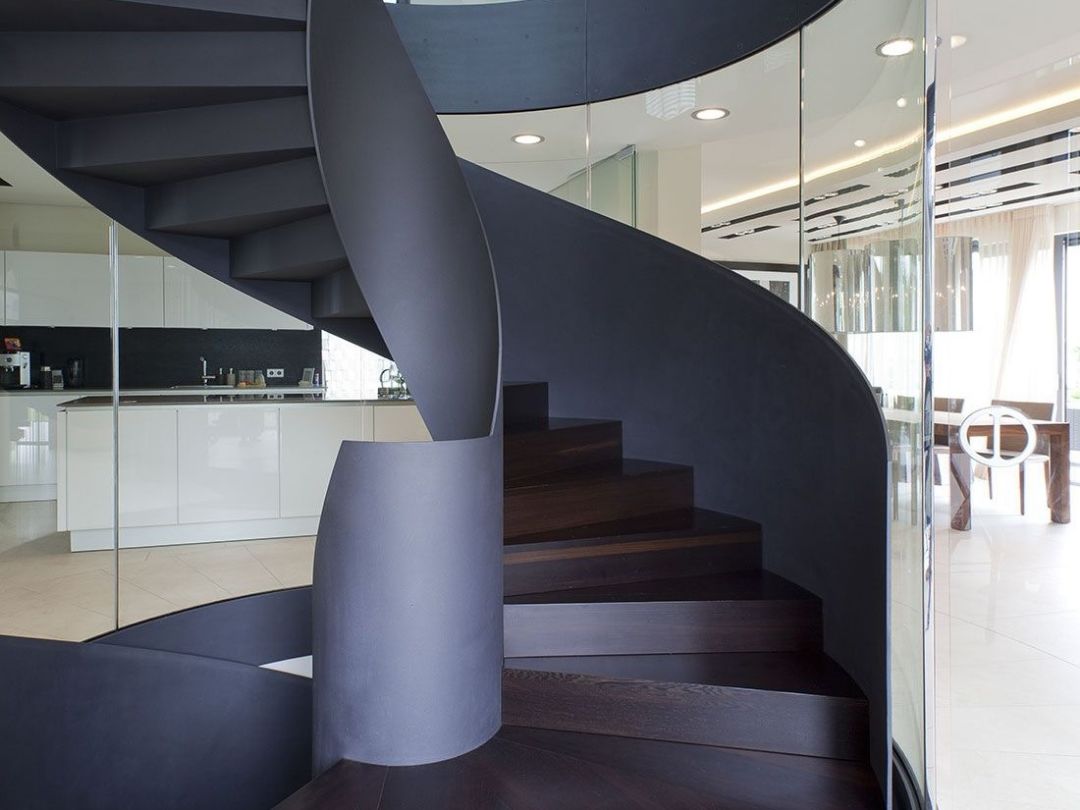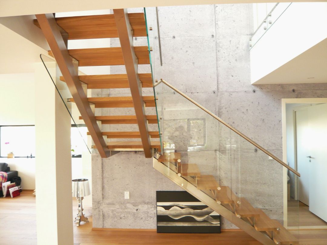 Современные лестницы из легкого и прочного алюминия, в комбинации с природными материалами: стекло, дерево, камень.